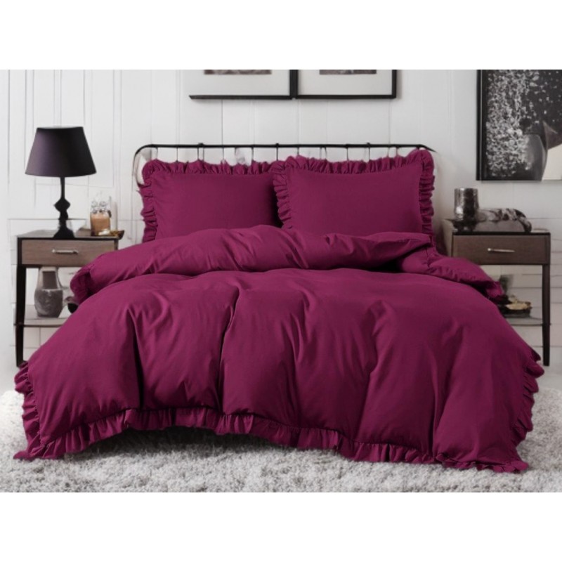 Culoarea bordo, împreună cu volănaşele, creează un accent elegant şi mai intens, oferind patului un aspect decorativ şi rafinat.