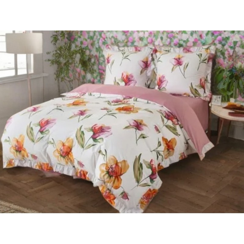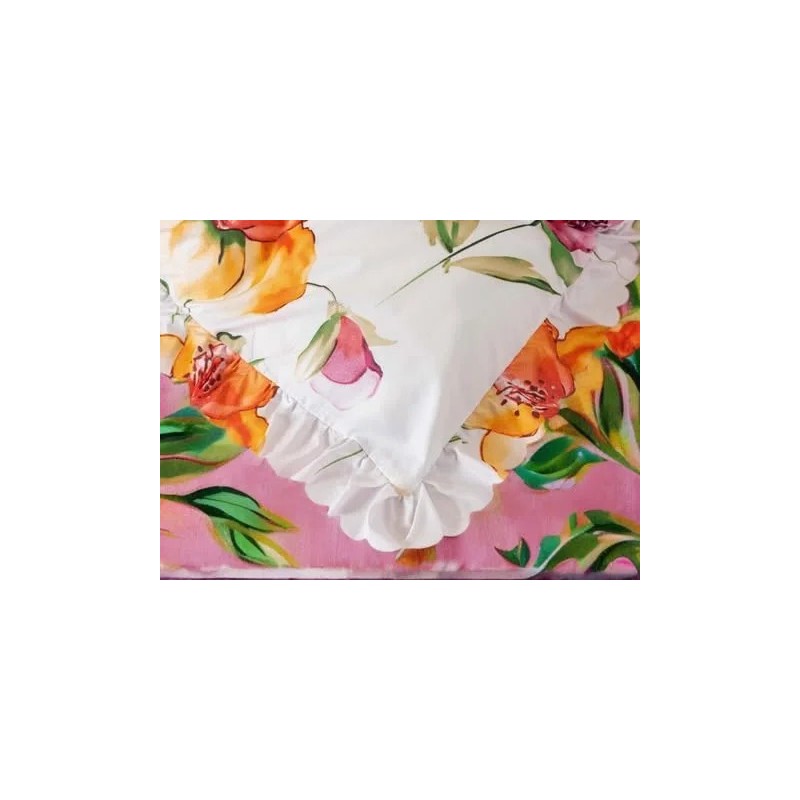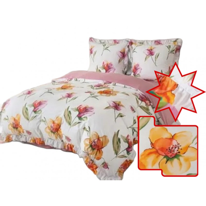 Un set care aduce stil în dormitor şi confort în fiecare noapte. Volănaşele oferă un detaliu decorativ delicat, iar modelul cu flori evidenţiază patul şi dă un aer mai proaspăt încăperii. Microfibra moale, netedă şi plăcută la atingere susţine relaxarea, iar materialul respirabil contribuie la un somn confortabil. În plus, este o alegere practică: nu se şifonează, se usucă rapid şi se întreţine uşor. Închiderea cu fermoar ajută la schimbarea rapidă şi comodă. Din cauza procesului de producţie, timpul de livrare este mai lung.