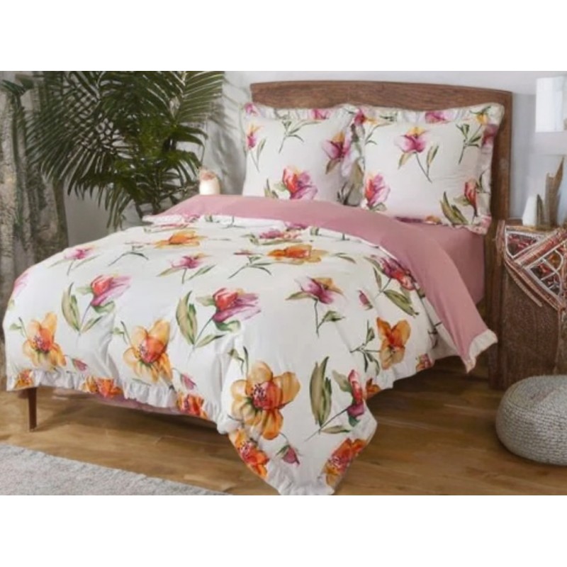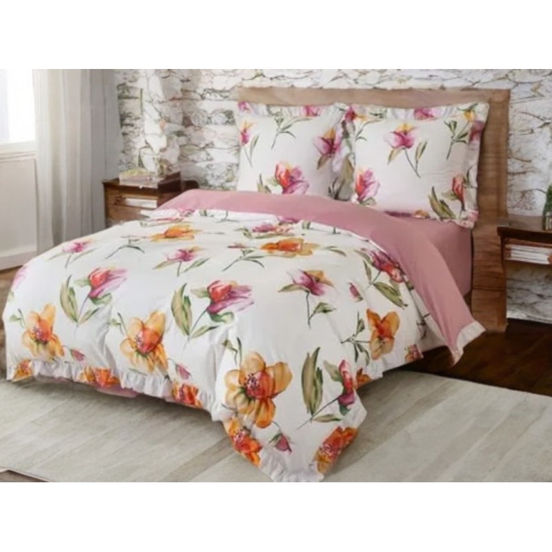 Un set care aduce stil în dormitor şi confort în fiecare noapte. Volănaşele oferă un detaliu decorativ delicat, iar modelul cu flori evidenţiază patul şi dă un aer mai proaspăt încăperii. Microfibra moale, netedă şi plăcută la atingere susţine relaxarea, iar materialul respirabil contribuie la un somn confortabil. În plus, este o alegere practică: nu se şifonează, se usucă rapid şi se întreţine uşor. Închiderea cu fermoar ajută la schimbarea rapidă şi comodă. Din cauza procesului de producţie, timpul de livrare este mai lung.