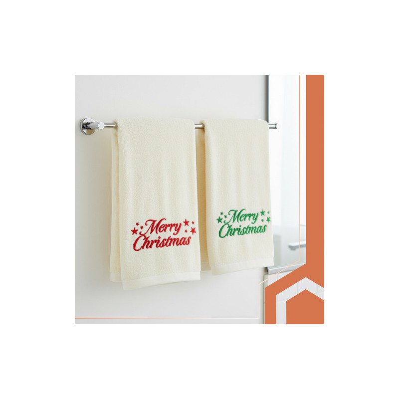 Acest set de două prosoape în culori de Crăciun combină aspectul practic cu stilul festiv. Confecționate din bumbac moale și absorbant și decorate cu broderie "Merry Christmas", acestea vor aduce un strop de spirit de Crăciun în baia ta. Perfecte ca cadou sau ca accent decorativ elegant.