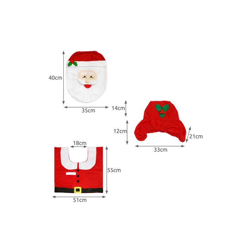 Un set festiv pentru baie este o modalitate excelentă de a aduce spiritul Crăciunului chiar și în cele mai mici încăperi. Motivul vesel cu Moș Crăciun, materialul moale și covorașul antiderapant combină umorul și funcționalitatea. Dimensiunile universale se potrivesc majorității toaletelor, iar setul este un cadou de Crăciun perfect și distractiv.